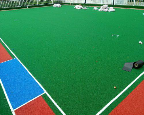 在場(chǎng)地施工過程中,先將定制好的門球場(chǎng)人造草坪放到指定位置并進(jìn)行攤開;其次在進(jìn)行接縫的步驟時(shí),必須要確定接縫口的正反方向,粘接接縫口的時(shí)候一定要將誤差控制在可允許誤差范圍內(nèi)。