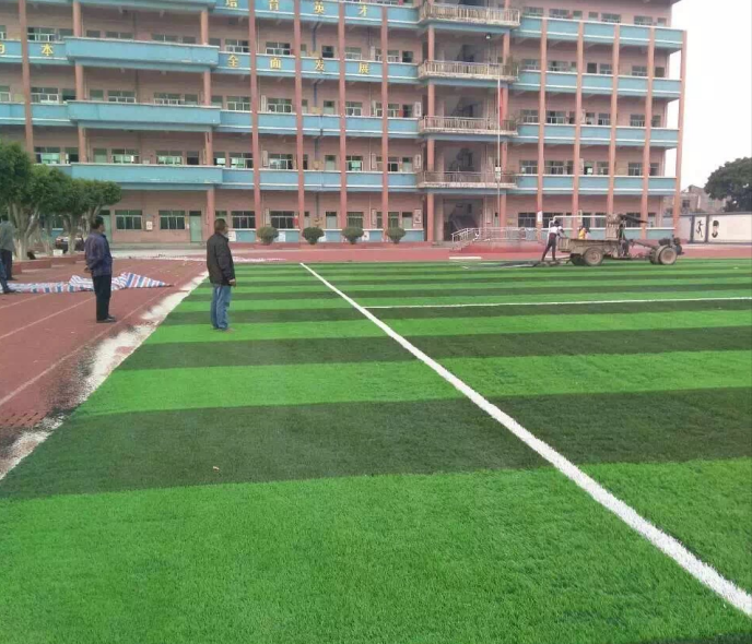 廣東省東莞市企石鎮(zhèn)新域?qū)W校場(chǎng)地完工圖如下,綠達(dá)可以根據(jù)您的要求來(lái)定做草坪參數(shù)。